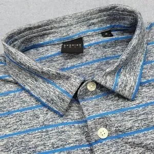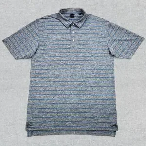 Dunning Golf Polo Shirt Men's XL Gray Blue Stripes Performance Stretch Golf