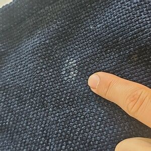 Worn about a dozen times, just enough so it has softened up, nice to wear. has one small burn mark on it, once the indigo started to fade it shouldnt be so prominent.