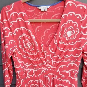 Boden Coral V neck Floral Faux Wrap Dress size US 10