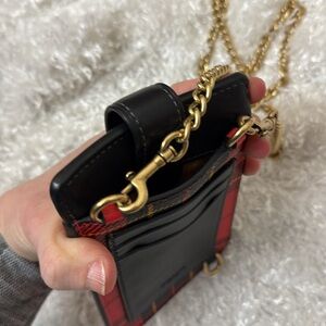Coach cell phone crossbody chain strap wallet purse bag red plaid