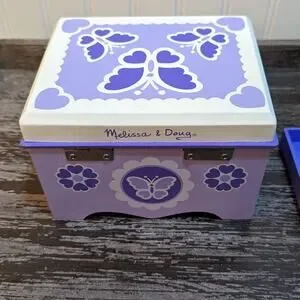 Melissa & Doug Purple Kid's Jewelry Box with Mirror and Pull Out Tray. Pre Owned-gently used.