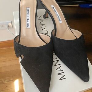 Manolo Blahnik Black Heels with Kitten Heel Mules Bely 50 Suede 38 8 7.5
