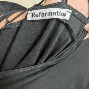 Reformation Kinsey Knit Long Sleeve Dress Size Large in Black Lace Up Cut Outs