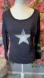 This relaxed t-shirt showcases a bold star graphic on the front, set against a chic gray background. With its long sleeves and comfortable fit, it offers a stylish yet laid-back look perfect for any casual occasion.