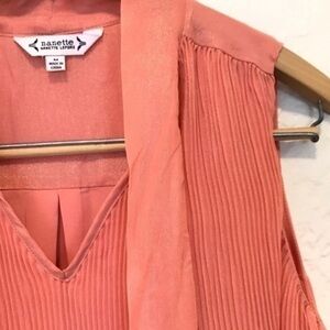 Nanette Leopore Pleated Tie Neck Metallic Shimmer Blouse