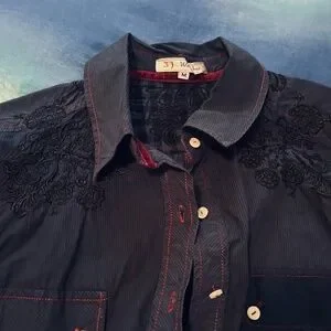 Super Hard-to-Find-Stunning- Johnny Was 3J Workshop Embroidered button down top.