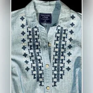 Abercrombie and Fitch Denim Blue Embroidered Shirt Dress