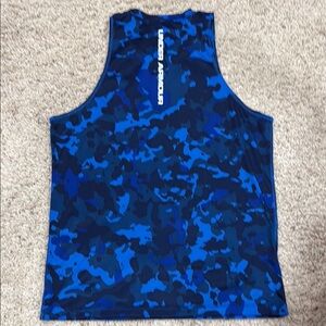 Experience ultimate comfort and style with the Under Armour Blue Athletic Tank Top, designed for optimal performance during workouts. This tank top features a striking blue camouflage pattern and is crafted from lightweight, breathable material to ensure freedom of movement. The iconic Under Armour logo adds a touch of distinction to this essential athletic wear.