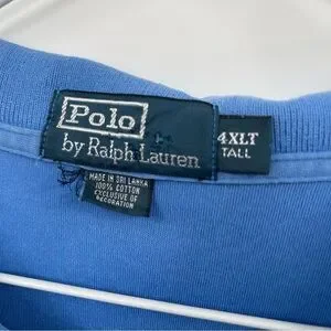 Polo Ralph Lauren Polo Shirt Mens Size 4XLT Blue Red Pony Classic Short Sleeves. Collared. Cotton. Small side slits. Chest 65. Length 36. Measurements are approximate. Good preowned condition.