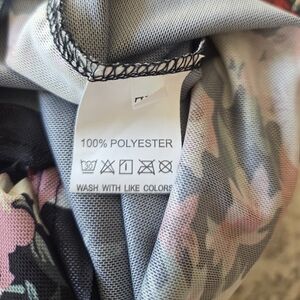 NWOT, never worn. This top is gorgeous and very sexy on. It is sheer and looks beautiful with a tank top underneath or a bralette for a gorgeous evening look. Black with a cream, rose and red floral print. It has a mock turtleneck and long sleeves. It is long enough to tuck in. This top is a very soft fabric that feels great on. 100% polyester with a nice stretch to it.