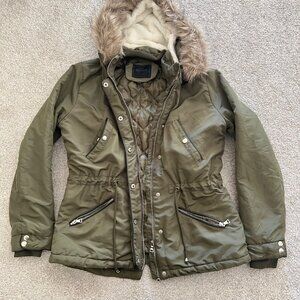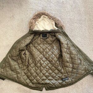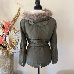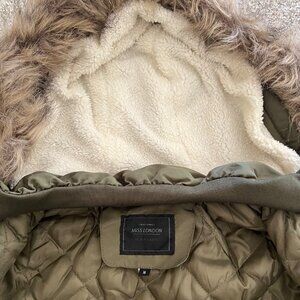 Y2K Miss London Black Label Olive Green Utility Jacket with Fur Trim Hood M