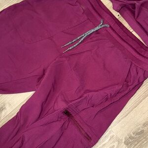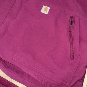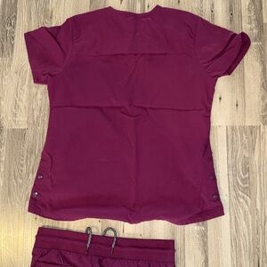 Carhartt women’s medical scrubs, burgundy. I have worn them a few times. Great condition. Pants go to ankles like a jogger style. Size large.