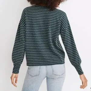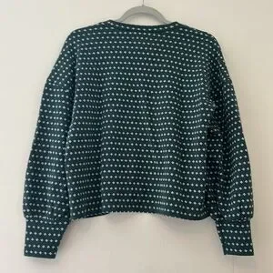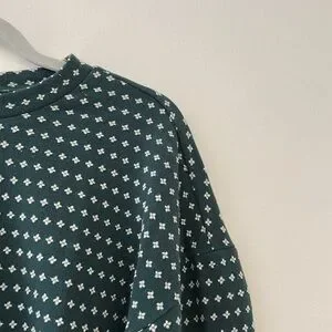 Dark green Floral Jacquard Puff-Sleeve Top from Madewell. Features crew neckline, slight crop, and puff sleeves. Super comfortable and cute! Has been gently worn, but still in great condition!