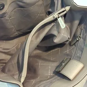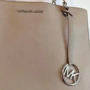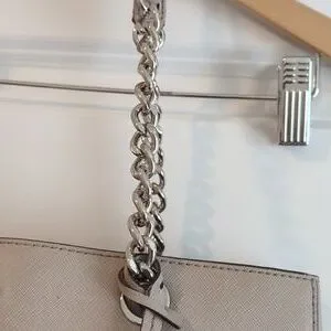 Handbag by Michael Kors Gray w/ Silver Hardware Zippered l/ Snap Closure Multiple Compartments PreLoved Minor Signs of Use View Pics to Make Informed Decision