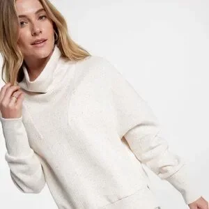 Embrace warmth and style with the CALIA Cream Cowl Neck Sweater, featuring a textured knit that adds depth and elegance. The relaxed fit and hip-length design make it perfect for layering during cooler days. BNC Only worn 2x.Runs large. I’m X-Large in tops and sweater s but this is very roomy. 36DDD