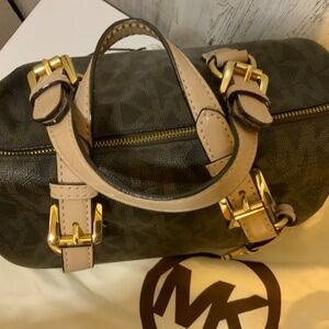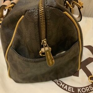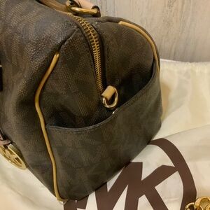 Beautiful Michael Kors logo cross body bag. Carry or add the cross body strap. Side pockets and multiple inside pockets. Comes with signature Michael Kors bag.
