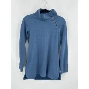 J McLaughlin Marisa Fleece Top Button Detailed High Neck Blue Size Medium