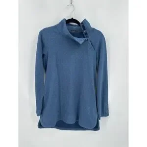 Keywords: J McLaughlin top, Blue fleece top, high neckline, top with pockets