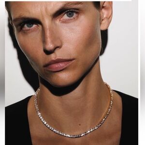 New. Dorsey “Kate” necklace 15”. 3.75 mm lab white sapphires, 18k gold plated. Comes with original pouch and box. Never worn.