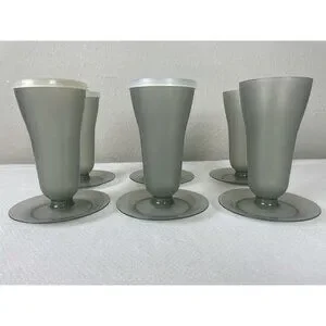 Vintage Tupperware parfait cups in smoky grey - set includes 6 cups with the bases and 4 lids 754 296.