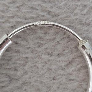 925 Sterling Silver Hoop Earrings. Light weight and comfortable to wear. Earrings have a hinge for easy on / off which prevents the earrings from bending. .5" length