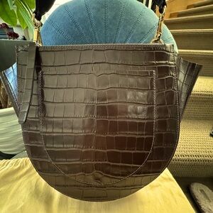 Wandler Hortensia Top Handle Bag Croc-embossed Brown Calfskin leather