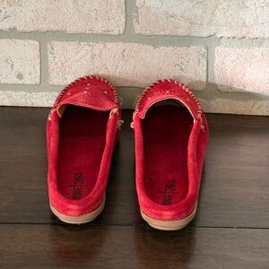 Red Suede Moccasin Clog with Beaded Accents