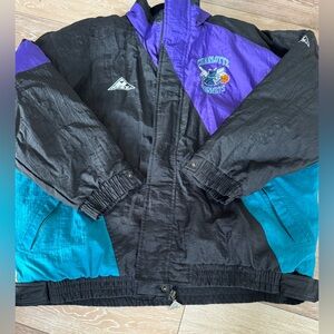 Men’s Vintage NBA By Apex One Charlotte Hornets Full Zip Jacket Coat. Officially Licensed. Men’s Size XL Extra Large. Colors Include Black, Purple And Teal. Item Is Pre-owned, In Good Condition And Shows Normal Wear. Some Discoloration On Inside Lining Of Jacket, As Pictured. DOES NOT HAVE HOOD. No Rips Or Tears. Since Item Is Pre-owned And Used, The Item Has Some Imperfections. Please Look At Pictures Closely Before Purchasing. Ask Any Questions You May Have About The Item. Item In Pictures Is Exact Item Being Purchased.
