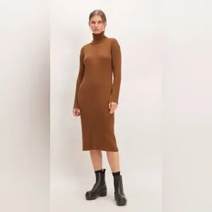 Everlane | Medium Burnt Orange Camel Cotton Wool Turtleneck Dress