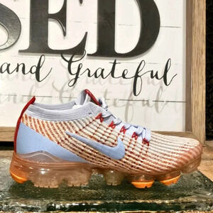 Nike Air VaporMax Flyknit 3 Blue Orange Wmns Sz 8 #AJ6910 400 New Condition