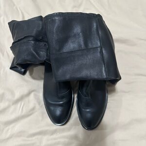 ALL BLACK brand over the knee leather wedge boots size 41 FREE PEOPLE