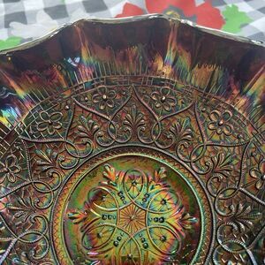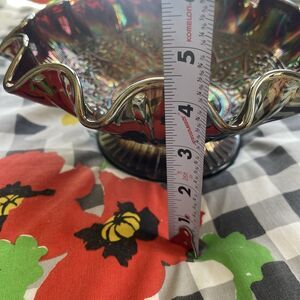 FENTON HEARTS & FLOWERS AMETHYST CARNIVAL GLASS Medallion Fruit Bowl pedestal