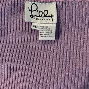 Lilly Pulitzer Orchid Flowered VNeck Trim Silk Sweater