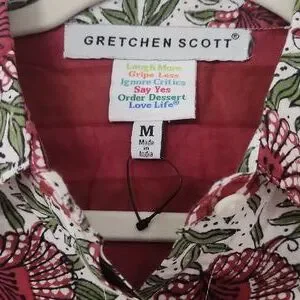Beautiful floral, cotton, button down blouse by Gretchen Scott! Great condition! Size Medium. Can be dressed up or casual with jeans! Measurements available upon request. Offers welcome!