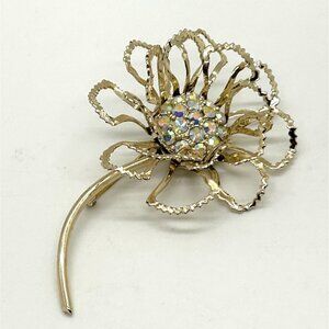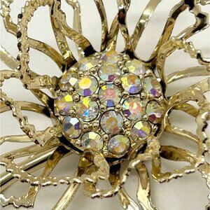 Vintage Aurora Borealis Brooch Rhinestone Sarah Coventry Gold-Tone Flower 1960s