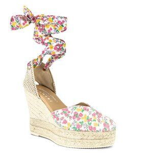 Step into romantic, vintage-inspired style with these LoveShackFancy x Manebi Heart-Shaped Wedge Espadrilles in the dreamy Fruity Punch floral print. These rare, sold-out platform wedges are a must-have for any LoveShackFancy lover!