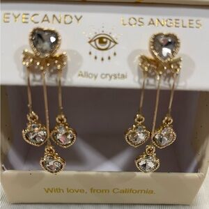 Elegant gold earrings with crystal heart shaped stones from Luxe Collection by Eye Candy in Los Angeles . Perfect for adding a touch of luxury to any outfit.