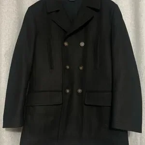 Stylish black Ralph Lauren double-breasted coat with button details. Perfect for a sophisticated look. Has nautical detailing and lightly lined. 40R, dry clean only.
