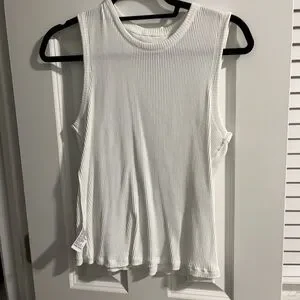 Elevate your wardrobe with this chic white sleeveless ribbed top. Perfect for any occasion, it offers both comfort and style.