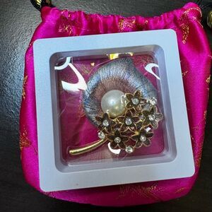 Special and elegant white freshwater pearl brooch with delicate shell design.The pearl is very smooth,with flawless skin and strong mirror-like lustre.