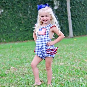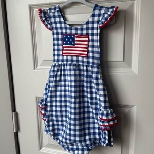 Classic Whimsey Royal Blue Gingham American Flag Knit Ruffle Bubble Size 3T