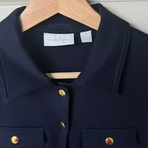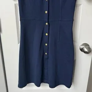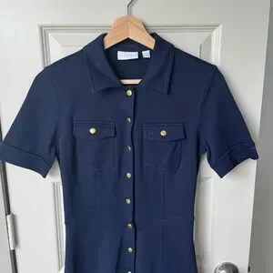New York & Company Navy Blue Gold Button Snap Font Collared Mini Dress Size XS