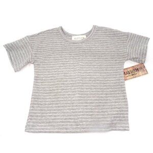 Mayhem a perfect little mess Gray and White Stripe Outfit. Short Sleeve Pull Over Top with Matching Short with Elastic Waist and Drawstring Tie size 5, Waist 20in. Length 10 in. Viscose-Spandex NWT