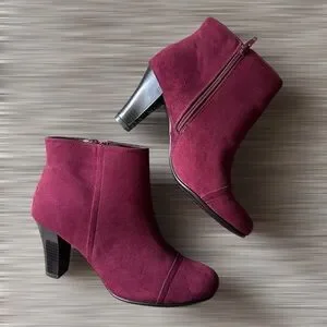 Aerosoles Scroll Book Womens Ankle Boots Burgundy Faux Suede Size 7 1/2M
