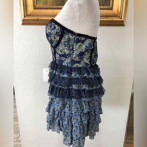 Forever 21 Twist Bustier Dress in Lace Floral Blue bubble dress size S