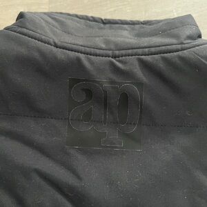 Black nylon side with pockets, gray Sherpa side with pockets. Sherpa has a bit of wear. Very warm!