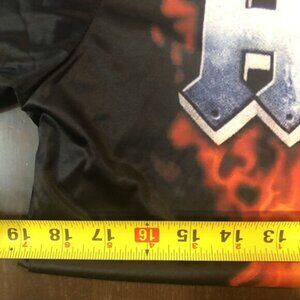 The multicolor design of this T-shirt is sure to catch the eye of anyone who sees it, and the rock and music themes make it perfect for any occasion. Whether you're going to a concert or just hanging out with friends, this shirt is sure to make you stand out from the crowd. So why wait? Add this AC/DC Flaming Guitar L T-shirt to your collection today and show off your love for rock and roll!