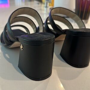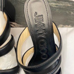 New sz 8-8.5 / 39 Jimmy Choo Black Leather Auna Mule Open Toe Sandal Shoes