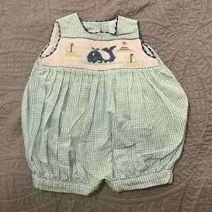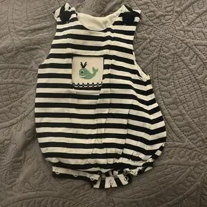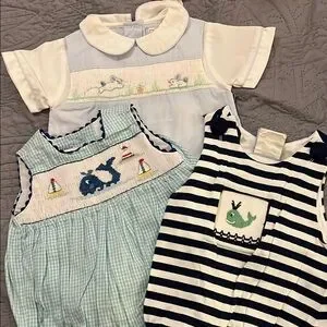 Set of three baby rompers featuring cute animal embroidery. Includes designs with bunnies, whales, and nautical themes. Perfect for a playful and stylish look.