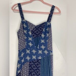 Mixed pattern maxi dress featuring a sweethe neckline.